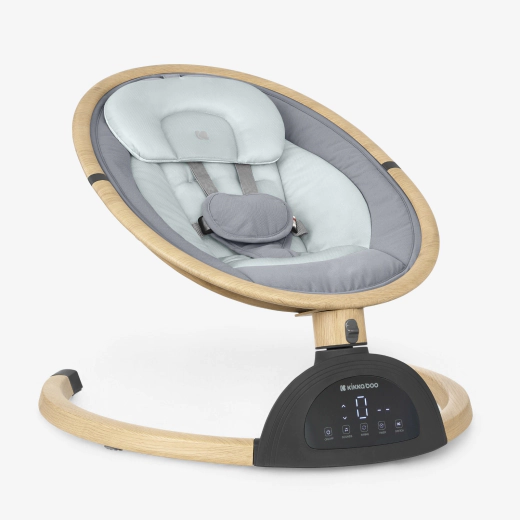 The ASHLEE electrical swing can be used by newborns weighing up to 9 kg. Crafted with a lightweight aluminum frame and an elegant wooden coating, this product combines style with functionality, offering a serene environment for your baby.