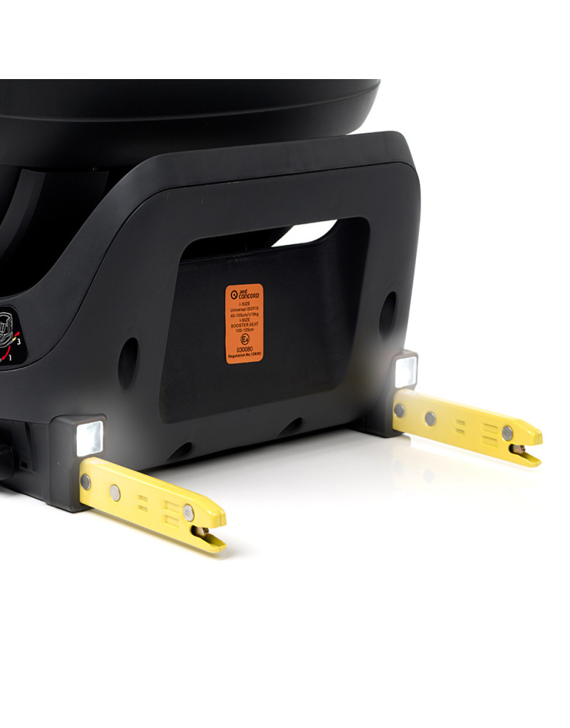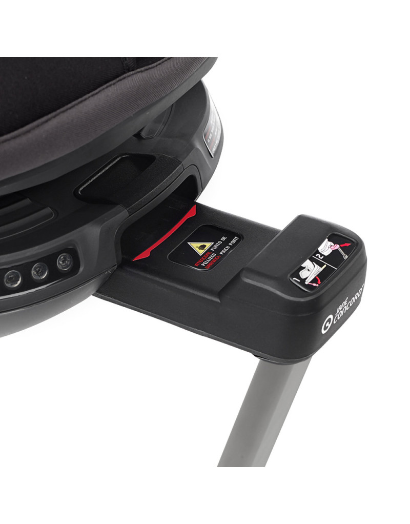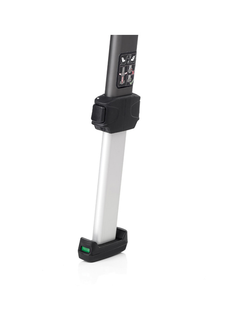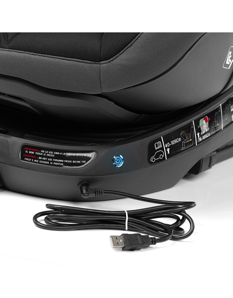 Chequeo electrónico y avisador de correcta fijación del isofix derecho e izquierdo, de correcto posicionado de la pata de apoyo y la posición de la silla. Alimentación con batería recargable mediante cable USB de 1,8 m suministrado con la silla (5V 1A).